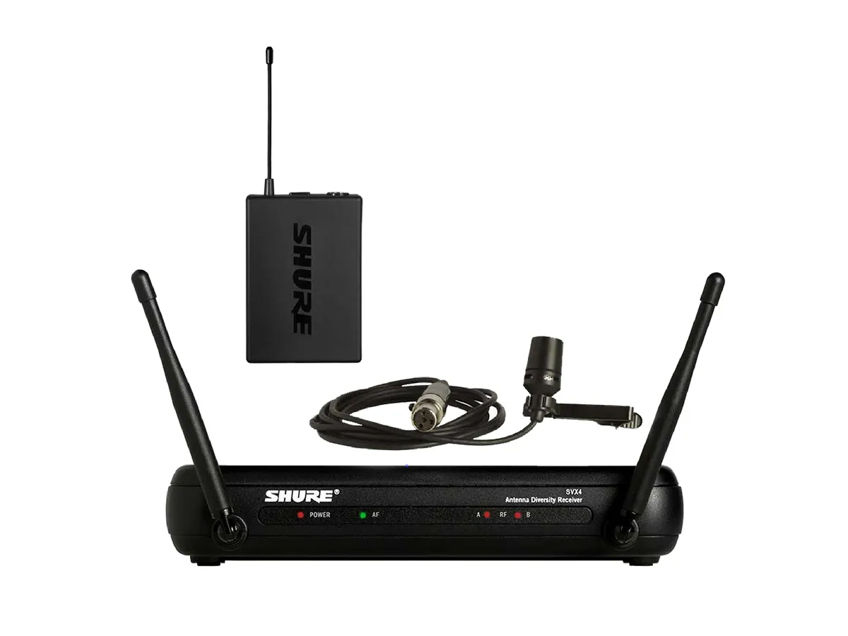 Gồm 1 bộ thu SVX4 và 1 bộ phát SVX1, đi kèm với micro cài áo CVL.